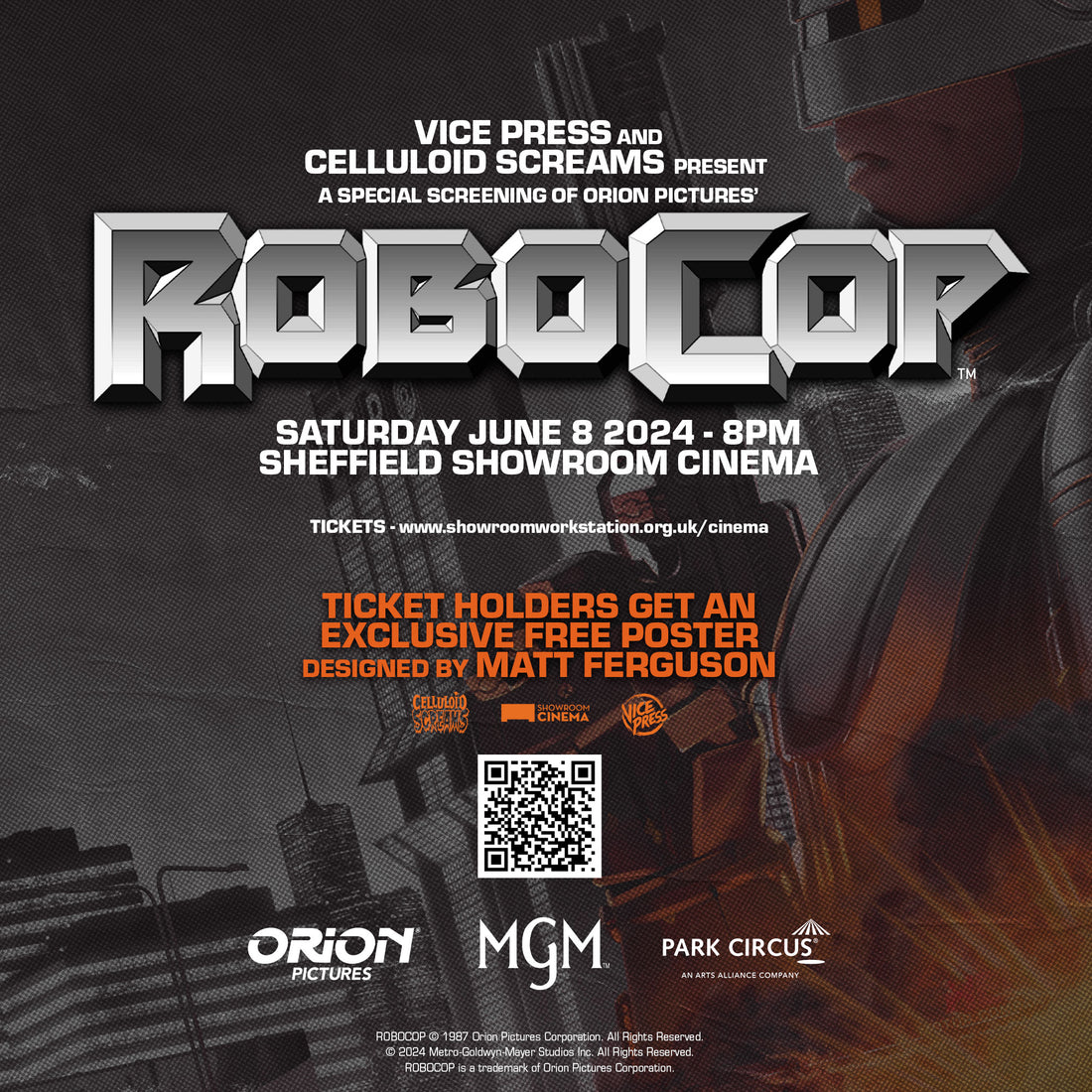 This year we have also partnered with Celluloid Screams to host a very special screening of RoboCop (1987) at 8pm on Saturday the 8th of June at The Showroom Cinema.